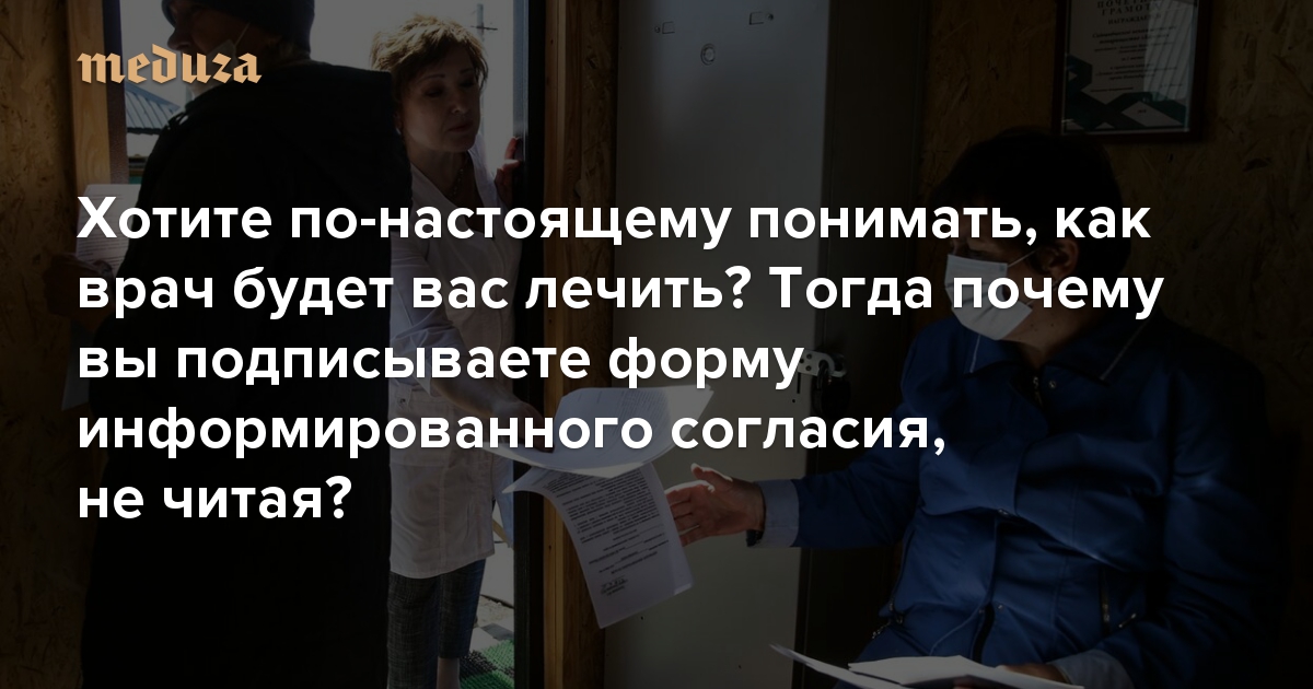 Хотите по-настоящему понимать, как врач будет вас лечить? Тогда почему вы подписываете форму информированного согласия, не читая? В России это обычная практика — но она вредит и пациентам, и врачам. И ее можно изменить