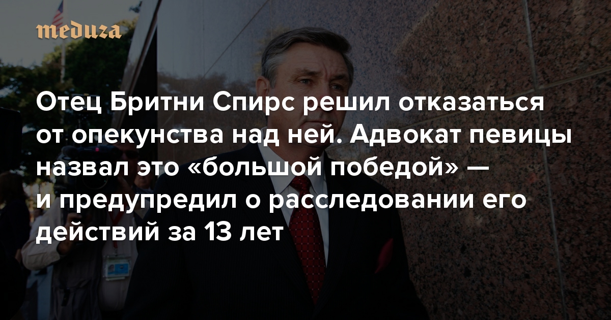 Отец Бритни Спирс решил отказаться от опекунства над ней. Адвокат певицы назвал это «большой победой» — и предупредил о расследовании его действий за 13 лет