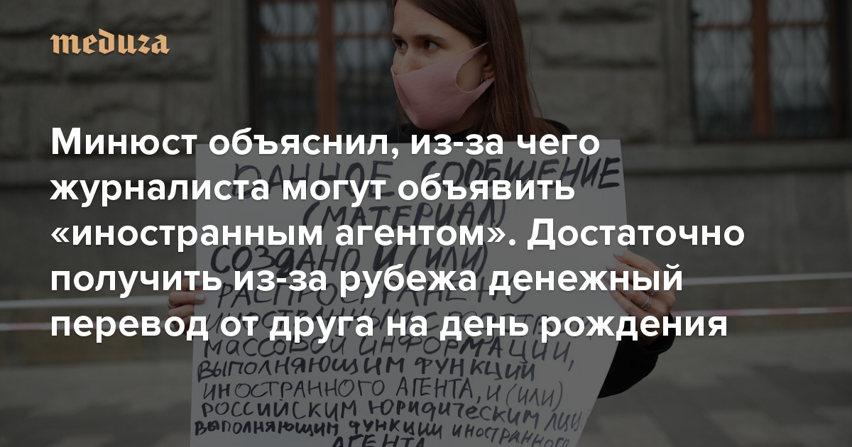 Минюст объяснил, из-за чего журналиста могут объявить «иностранным агентом». Достаточно получить из-за рубежа денежный перевод от друга на день рождения