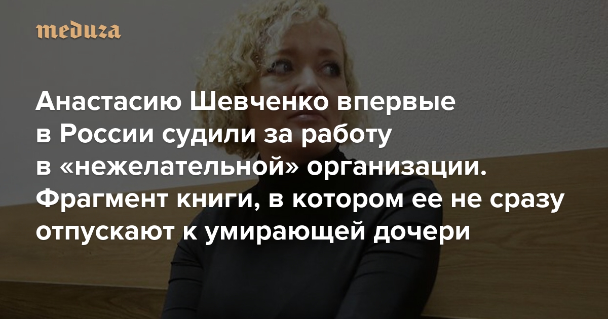 «Я думала только о том, что мой ребенок там совсем один» Анастасию Шевченко впервые в России судили за работу в «нежелательной» организации. Фрагмент книги, в котором ее не сразу отпускают к умирающей дочери