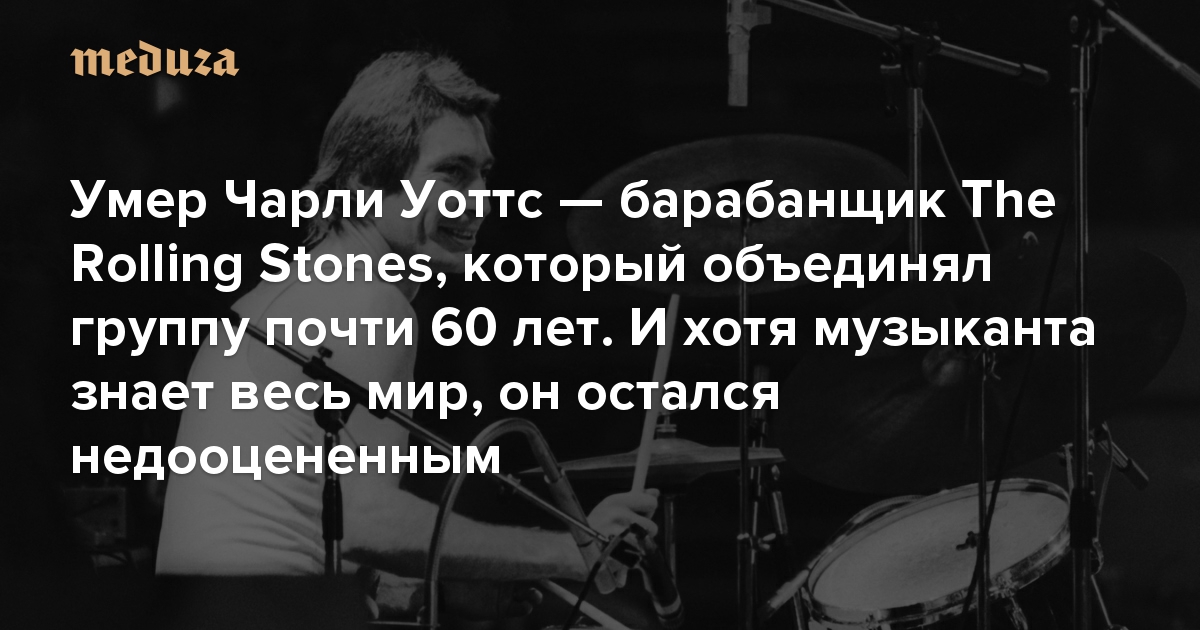 Умер Чарли Уоттс — бессменный барабанщик The Rolling Stones, который играл в группе почти с самого ее основания — с 1963 года. Ему было 80 лет, он ушел из жизни в одной из больниц Лондона в окружении своей семьи. В 2004-м Уоттсу диагностировали рак горла, в августе 2021 года он впервые отказался участвовать в гастрольном туре группы. Уоттс был выдающимся барабанщиком, который никогда не был в центре внимания, но при этом представить группу без него невозможно. Лев Ганкин рассказывает его историю.