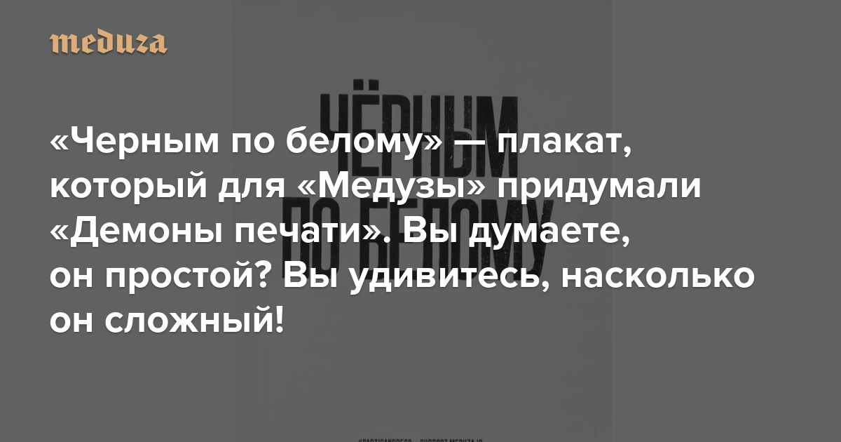 «Черным по белому» — плакат, который для «Медузы» придумали «Демоны печати». Вы думаете, он простой? Вы удивитесь, насколько он сложный!