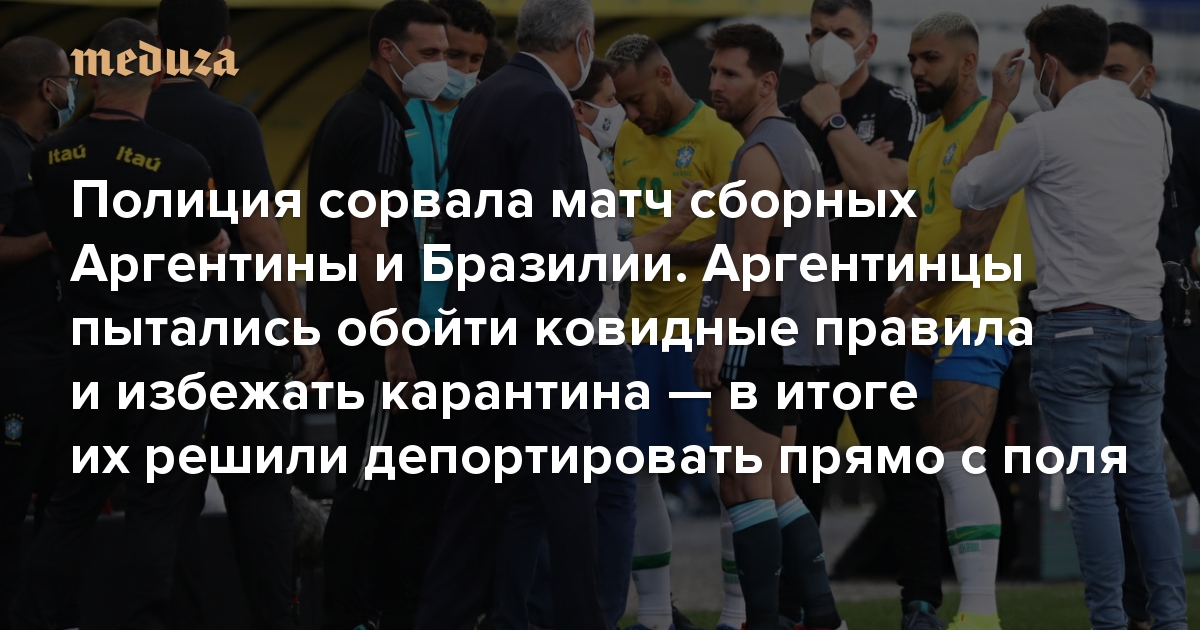 Полиция сорвала матч сборных Аргентины и Бразилии. Аргентинцы пытались обойти ковидные правила и избежать карантина — в итоге их решили депортировать прямо с поля