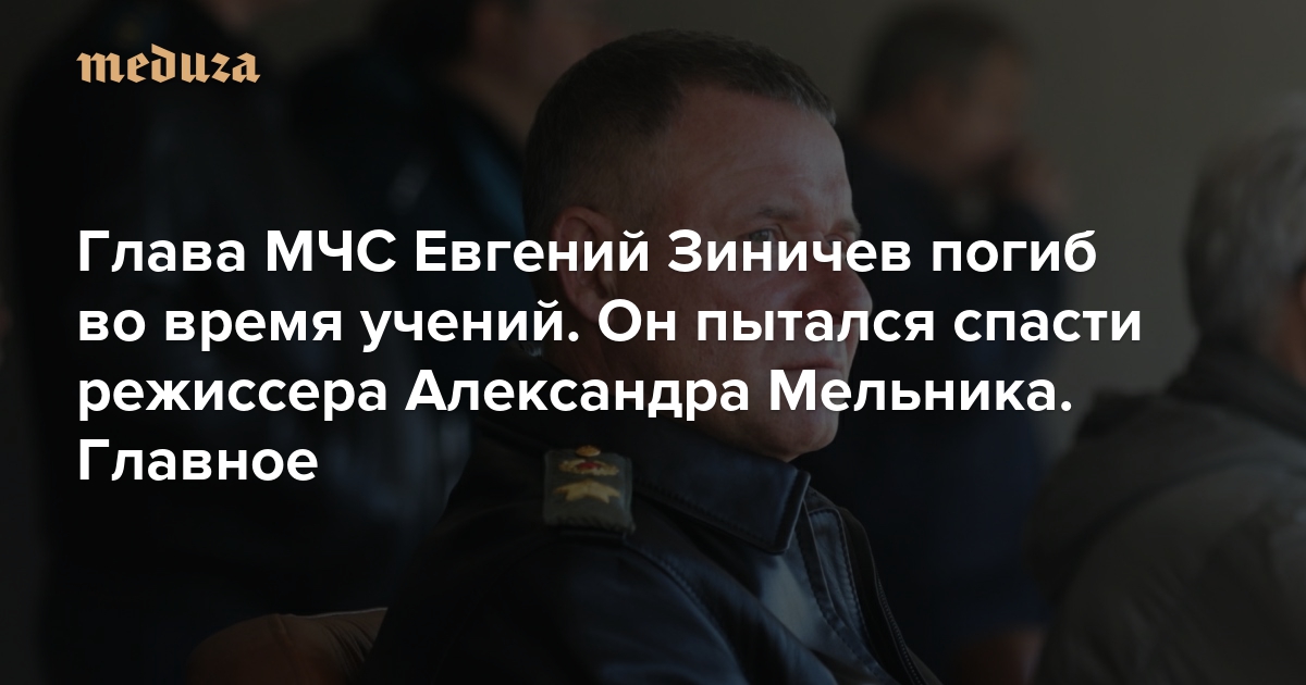 Глава МЧС Евгений Зиничев погиб во время учений. Он пытался спасти режиссера Александра Мельника. Главное