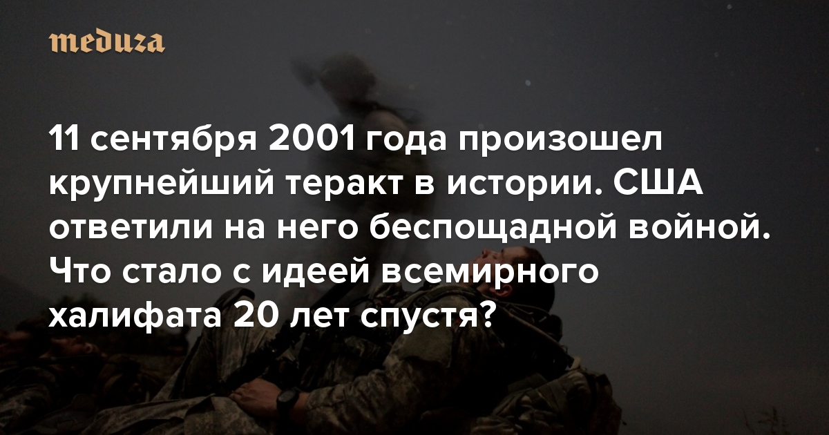 11 сентября 2001 года боевики «Аль-Каиды», которой руководил Осама бин Ладен, организовали террористическую атаку на США. После крупнейших в истории терактов Вашингтон и его союзники по всему миру начали «войну с терроризмом», первой целью которой стал именно «Талибан», который тогда тоже контролировал Афганистан и отказался выдать бин Ладена, укрывшегося в этой стране. Власть талибов была свергнута, но победить в этой и других локальных войнах (которые теперь с осуждением называют «бесконечными») американцам так и не удалось, и теперь США планомерно сворачивают присутствие в регионах, которые еще недавно называли оплотом терроризма. Поменялось и устройство крупнейших террористических группировок. Ходили слухи (впоследствии не подтвердившиеся), что на 11 сентября 2021 года талибы даже планируют инаугурацию своего правительства. «Медуза» рассказывает, что позволило им и другим группировкам выжить, а где-то и победить.