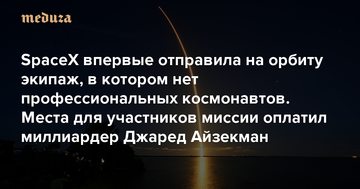 SpaceX впервые отправила на орбиту экипаж, в котором нет профессиональных космонавтов. Места для участников миссии оплатил миллиардер Джаред Айзекман Этот полет установил сразу несколько рекордов