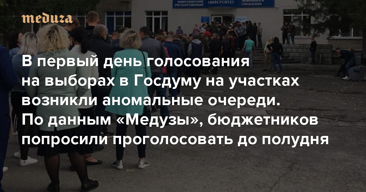 В первый день голосования на выборах в Госдуму на участках возникли аномальные очереди. По данным «Медузы», бюджетников попросили проголосовать до полудня