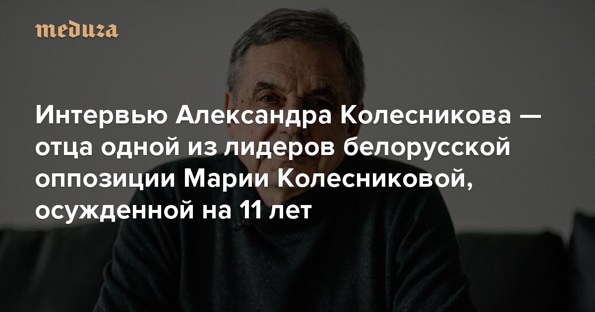 6 сентября Минский областной суд приговорил одного из лидеров белорусской оппозиции Марию Колесникову к 11 годам лишения свободы по делу о попытке захвата власти. Проходивший с ней по одному делу адвокат Максим Знак получил десять лет колонии (приговор еще не вступил в законную силу и может быть обжалован). Суд признал Марию и Максима виновными в заговоре с целью захвата государственной власти неконституционным путем, призывах к действиям, угрожающим национальной безопасности Беларуси, создании экстремистского формирования и руководстве им. В июле 2020 года Мария Колесникова стала одним из трех лидеров объединенного предвыборного штаба кандидата в президенты Светланы Тихановской. Двое других лидеров — сама Тихановская и Вероника Цепкало — после президентских выборов под давлением властей покинули Беларусь. Колесникова осталась в Беларуси, несмотря на то, что многие убеждали ее покинуть страну. Спецкор «Медузы» Ирина Кравцова поговорила с отцом Марии, Александром Колесниковым — о суде и приговоре, о том, почему его дочь пошла в политику, почему не захотела уехать, а также о том, как повлияли репрессии на оппозиционные настроения в Беларуси.