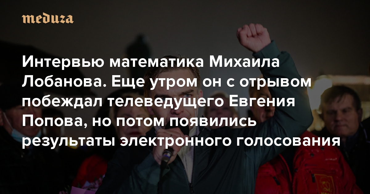 На прошедших выборах математик, доцент МГУ Михаил Лобанов выдвигался в Госдуму по Кунцевскому округу Москвы от КПРФ. Утром 20 сентября Лобанов, согласно подсчетам его штаба, опережал телеведущего Евгения Попова на 10,5 тысячи голосов. Однако позже появились окончательные результаты с учетом электронного голосования. По ним Попов набрал 35,17%, а Лобанов — 31,65%. Доцент МГУ уже заявил, что электронное голосование «пририсовало» телеведущему «отрыв в 20 тысяч голосов», и намерен протестовать против этого. «Медуза» поговорила с Михаилом Лобановым о том, как в округе шла избирательная кампания и что он планирует делать с ее результатами.