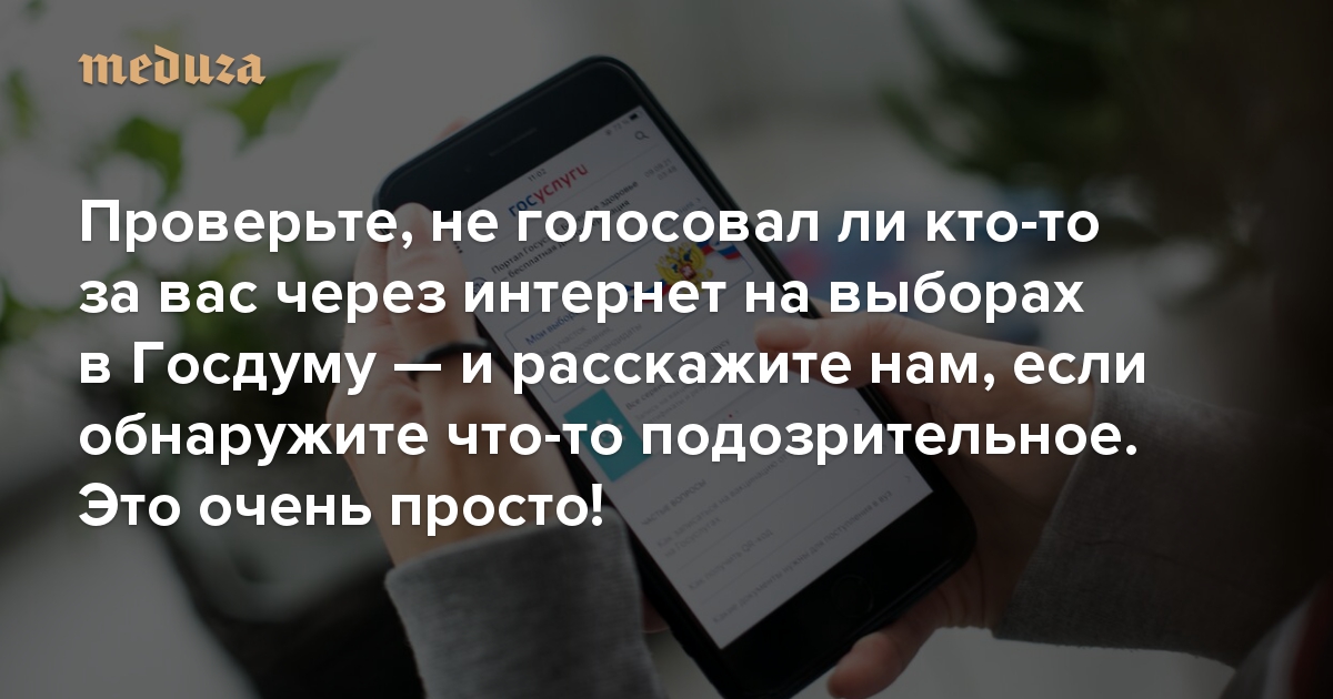 Проверьте, не голосовал ли кто-то за вас через интернет на выборах в Госдуму — и расскажите нам, если обнаружите что-то подозрительное. Это очень просто!