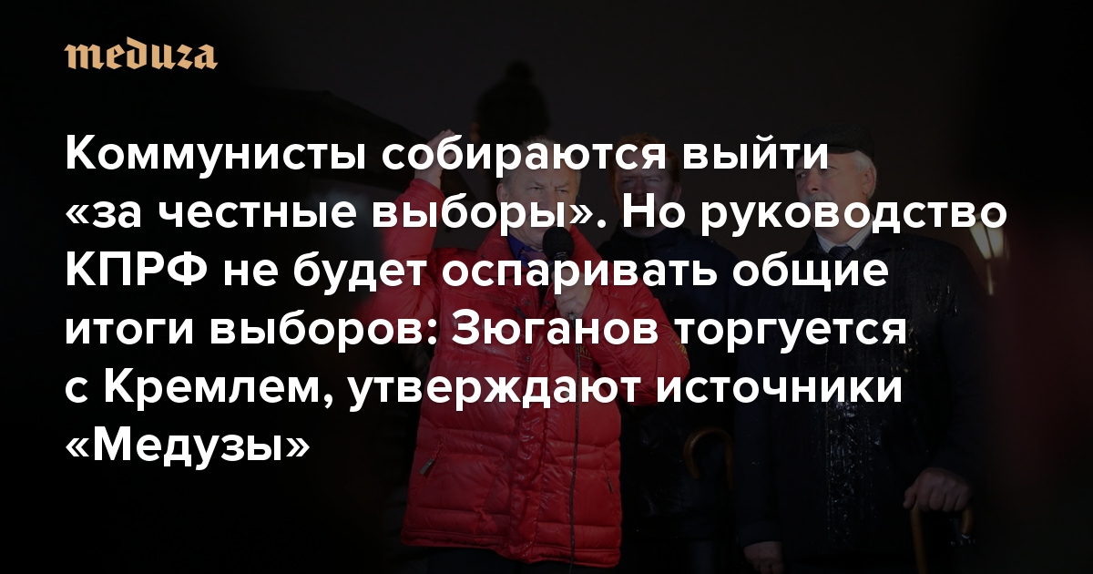 Коммунисты собираются выйти на акцию «за честные выборы». Но руководство КПРФ не будет оспаривать общие итоги выборов: Зюганов торгуется с Кремлем, утверждают источники «Медузы»