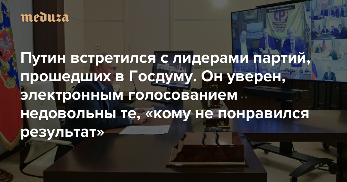 Путин встретился с лидерами партий, прошедших в Госдуму. Он уверен, электронным голосованием недовольны те, «кому не понравился результат»