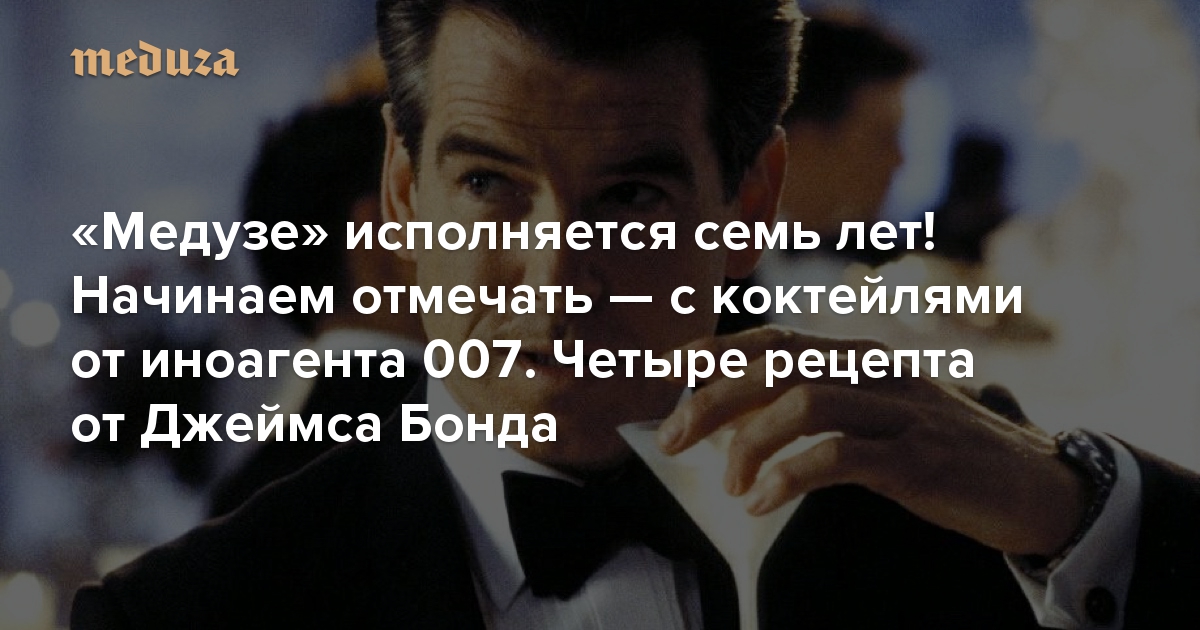 «Медузе» исполняется семь лет! Начинаем отмечать — с коктейлями от иноагента 007 Четыре рецепта от Джеймса Бонда. И никакого «смешать, но не взбалтывать» (или наоборот): эта легендарная фраза — миф