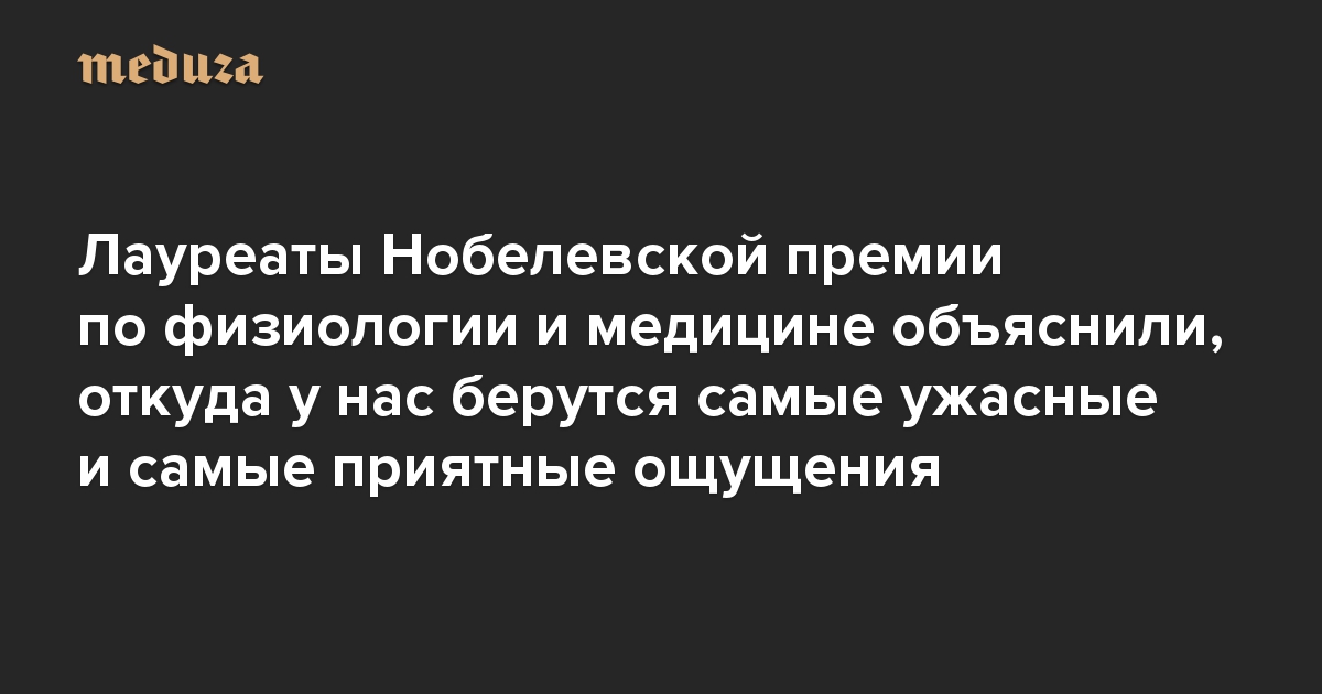 Боль — это жизнь Лауреаты Нобелевской премии по физиологии и медицине объяснили, откуда берутся самые ужасные и самые приятные ощущения — жара, холод, боль, нежное прикосновение