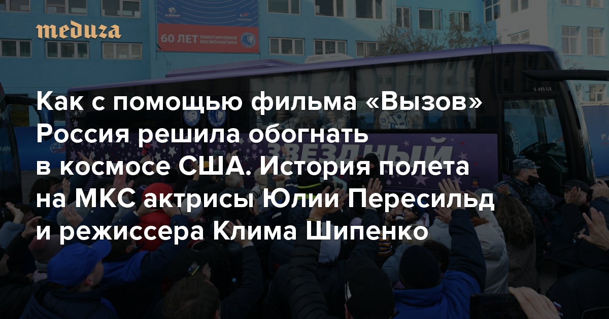 5 октября около полудня с Байконура на Международную космическую станцию (МКС) стартовала очень необычная экспедиция. На космическом корабле «Союз МС-19», кроме командира Антона Шкаплерова, на орбиту отправились кинорежиссер Клим Шипенко и актриса Юлия Пересильд. Их главная цель — съемки фильма «Вызов». По просьбе «Медузы» популяризатор космонавтики Александр Хохлов рассказывает о том, как «Роскосмос» и Первый канал решили опередить Голливуд.
