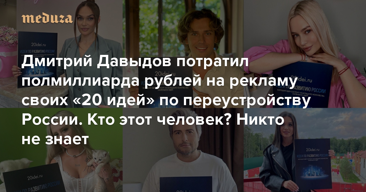 Дмитрий Давыдов потратил полмиллиарда рублей на рекламу своих «20 идей» по переустройству России. Кто этот человек? Никто не знает Главное из расследования «Би-би-си»