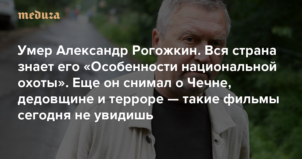 Умер Александр Рогожкин. Вся страна знает его «Особенности национальной охоты» и «Улицы разбитых фонарей» Еще он снимал о Чечне, дедовщине и терроре — такие фильмы сегодня не увидишь