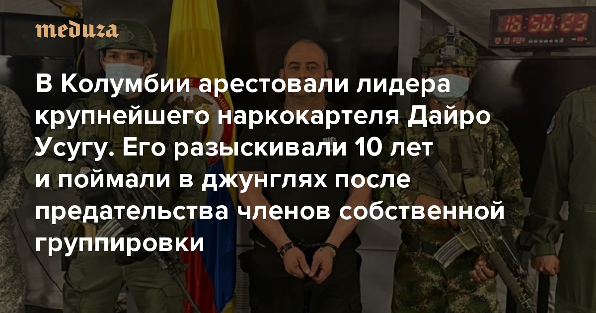 В Колумбии арестовали лидера крупнейшего наркокартеля Дайро Усугу Его разыскивали 10 лет и поймали в джунглях после предательства членов собственной группировки