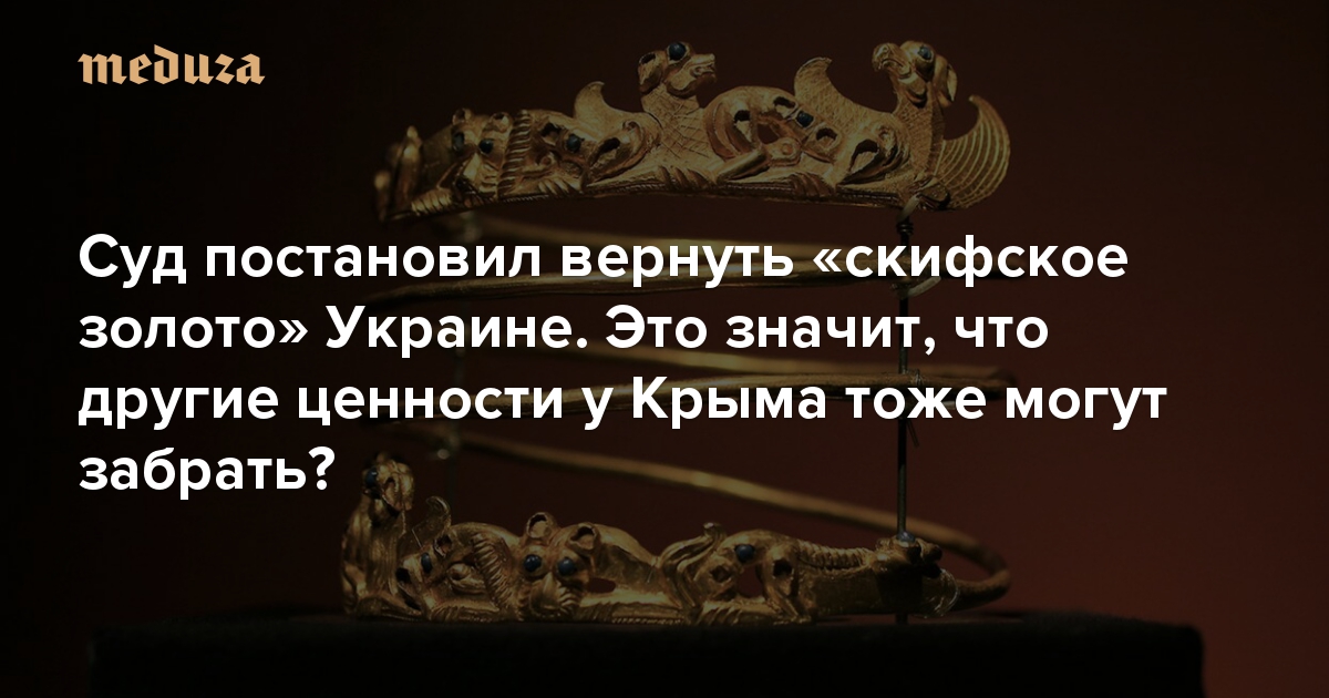 26 октября Апелляционный суд в Амстердаме решил, что коллекция «скифского золота» из музеев Крыма должна быть передана Украине. Несколько сотен уникальных предметов были отправлены на выставку в Нидерланды еще в феврале 2014 года. После завершения выставки Россия присоединила Крым, а «скифское золото» стало предметом споров. «Медуза» узнала у заместителя директора музея Русской иконы Сергея Богатырева, были ли в истории похожие случаи, что будет дальше с экспонатами и как решение суда может повлиять на будущие выставки.