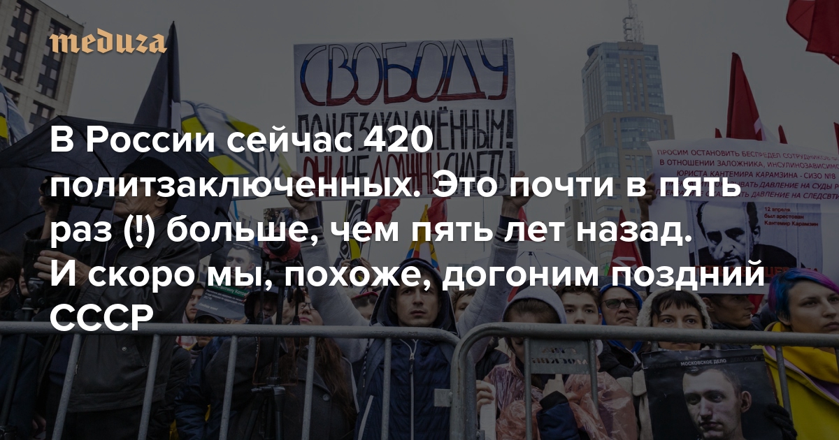 В России сейчас 420 политзаключенных. Это почти в пять раз (!) больше, чем пять лет назад И скоро мы, похоже, догоним поздний СССР. Обновленный список от «Мемориала» — с комментариями