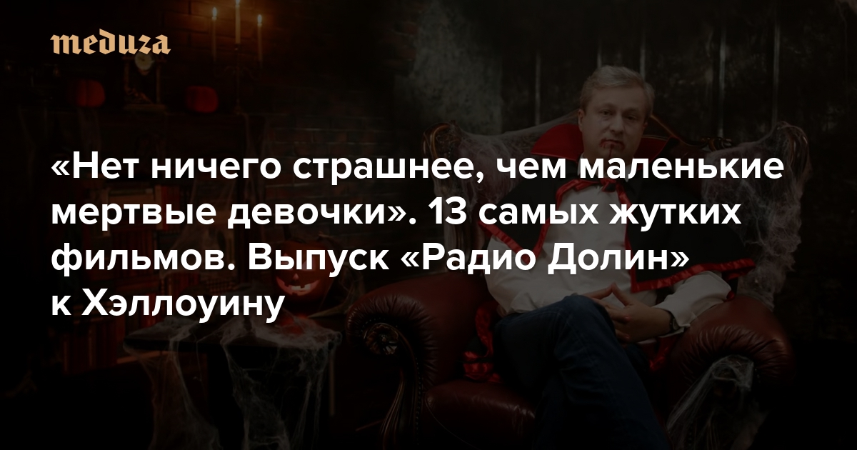 «Радио Долин» — ютьюб-шоу Антона Долина, которое раньше он делал вместе с «Медузой». Теперь это самостоятельный проект Долина, где, как и прежде, кинокритик рассказывает о кино и не только. Шоу выходит на ютьюб-канале «Радио Долин» — обязательно подпишитесь на него, чтобы не пропустить новые эпизоды. Накануне Хэллоуина — этот праздник отмечают 31 октября — Антон Долин выбрал 13 самых страшных фильмов, которые точно стоит посмотреть. И рассказал о жутких новинках проката. Трепещите!
