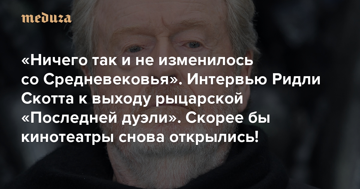 «Ничего так и не изменилось со Средневековья» Интервью Ридли Скотта к выходу «Последней дуэли». Скорее бы кинотеатры снова открылись — и мы бы увидели Дэймона и Драйвера в роли рыцарей!