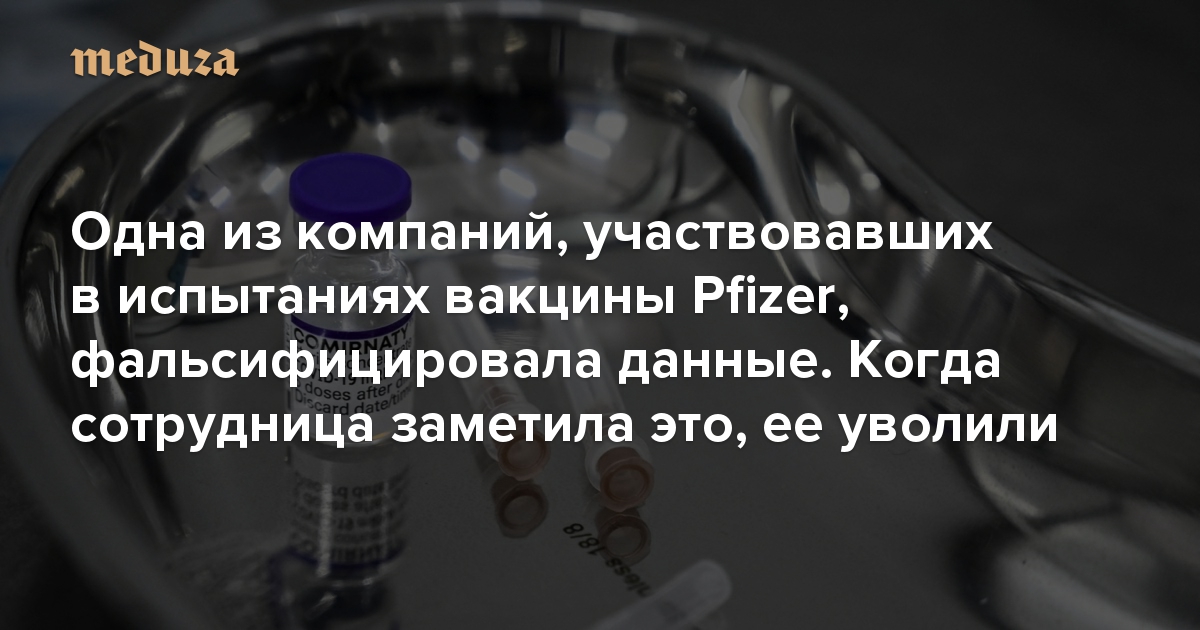 Одна из компаний, участвовавших в испытаниях вакцины Pfizer, фальсифицировала данные. Когда сотрудница заметила это, ее уволили
