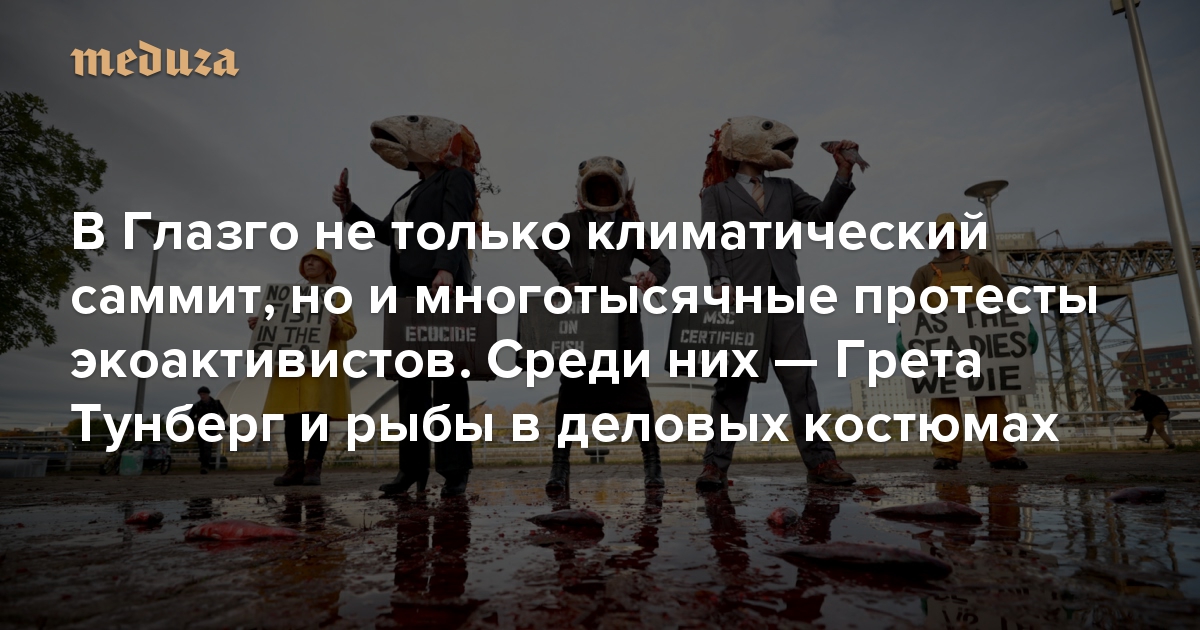 В Глазго не только климатический саммит, но и многотысячные протесты экоактивистов. Среди них — Грета Тунберг и рыбы в деловых костюмах Вот как это выглядит