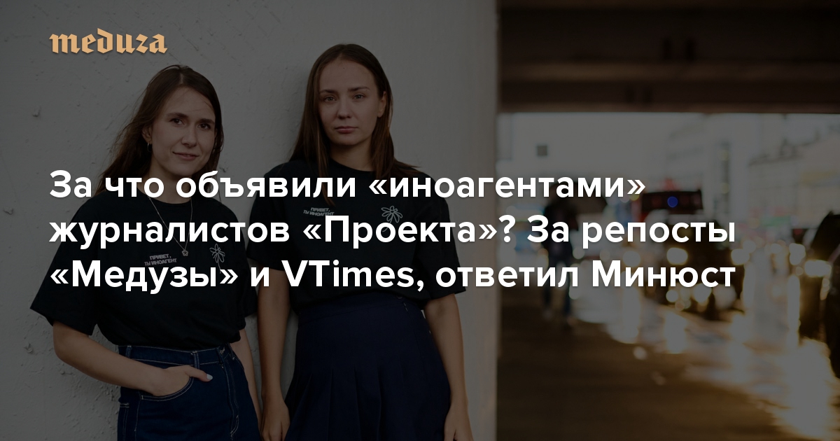 За что объявили «иноагентами» журналистов «Проекта»? За репосты «Медузы» и VTimes, ответил Минюст