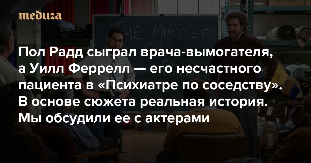 Пол Радд сыграл врача-вымогателя, а Уилл Феррелл — его несчастного пациента в сериале «Психиатр по соседству» В основе сюжета реальная история. Мы обсудили ее с актерами