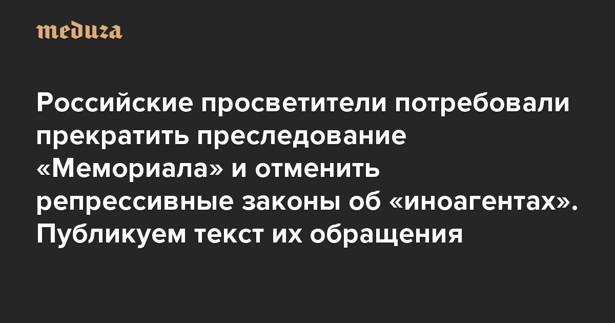 Мы, создатели и сотрудники просветительских и образовательных проектов, книгоиздатели и редакторы, протестуем против преследований общества «Мемориал», старейшей общественной организации современной России.