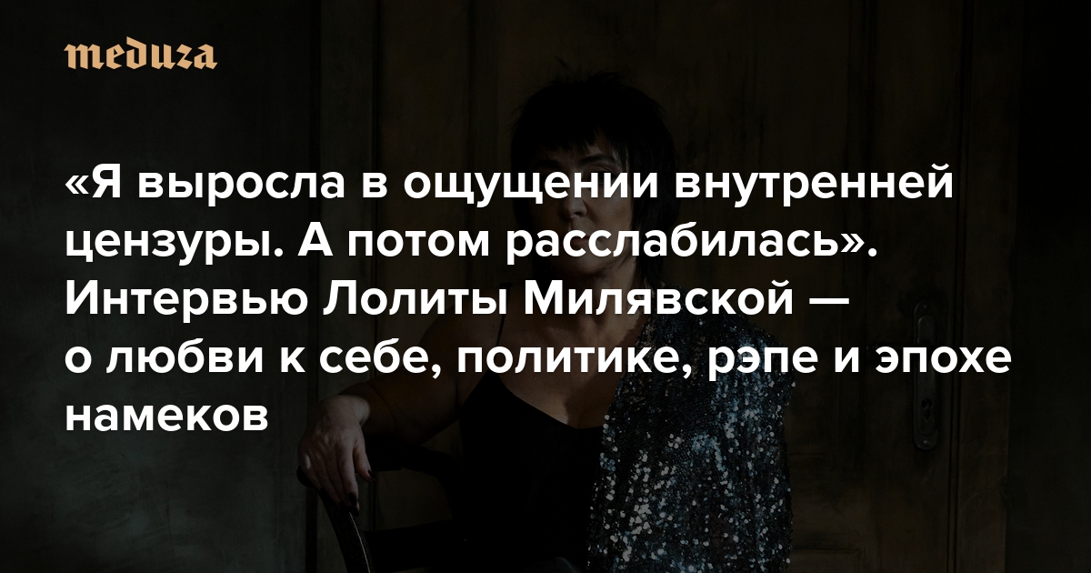 Лолита Милявская — уже давно не просто одна из самых известных певиц в стране. Просто перечисляем. В инстаграме Лолита поддерживает Юлию Навальную. В ютьюбе — появляется в самых модных шоу от Comment Out до «Что было дальше?». Там же выходят новые клипы: в интимном «Щекотно» Лолита — богиня (в прямом смысле), в синефильском «По-другому» поет голосом рэпера Косты Лакосты из команды Элджея, а в хулиганском «Антиклимаксе» ходит по Таганке почти обнаженной. А еще Милявская играет в спектакле Юрия Грымова «Женитьба», ведет шоу «Суперстар!» на НТВ и перепевает Моргенштерна в проекте LAB. Редактор «Медузы» Наталья Гредина поговорила с Лолитой Милявской о любви к себе и работе, цензуре и юморе — и ожидании оттепели.