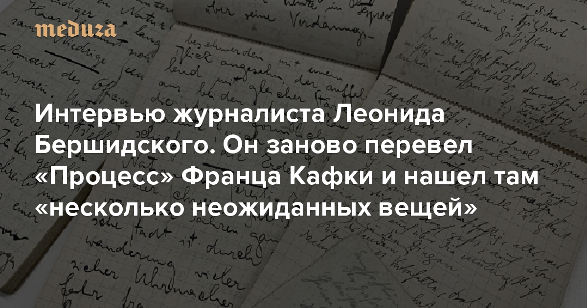 В издательстве «Альпина Паблишер» вышел новый перевод «Процесса» Франца Кафки. Его автор — российский журналист и медиаменеджер Леонид Бершидский, который сейчас живет в Германии и пишет для Bloomberg. Он уже переводил «1984» Джорджа Оруэлла. Как известно, роман Кафки не был окончен. Уже после смерти писателя его подготовил к печати Макс Брод — друг и душеприказчик автора. Он разложил главы романа, в том числе неоконченные, по отдельным тетрадям — однако они не были пронумерованы. И хотя Макс Брод придал рукописям завершенный вид, цельность «Процесса» — открытый вопрос. Новый русскоязычный перевод «Процесса» дополнен отброшенными Бродом фрагментами черновиков Кафки, а также отрывками, которые вычеркнул сам автор. Кроме того, в издании заново выстроена хронология событий, произошедших с К., и опубликованы изображения рукописи романа. Журналист Алексей Огнев побеседовал с Леонидом Бершидским об этой работе.