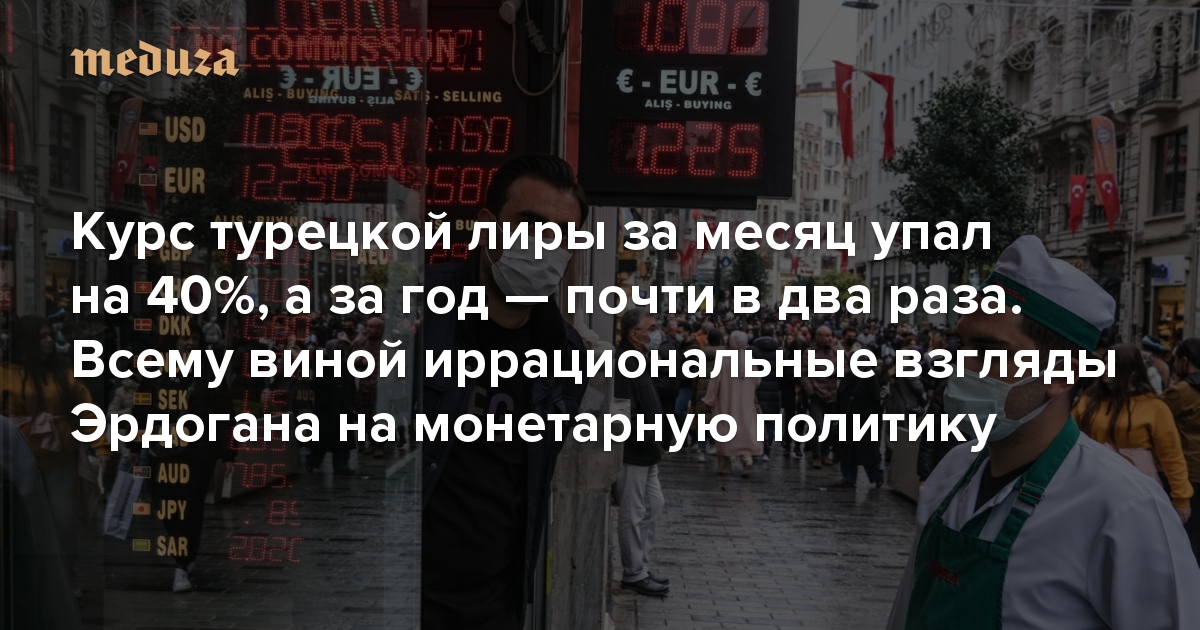 Курс турецкой лиры за месяц упал на 40%, а за год — почти в два раза. Всему виной иррациональные взгляды Эрдогана на монетарную политику