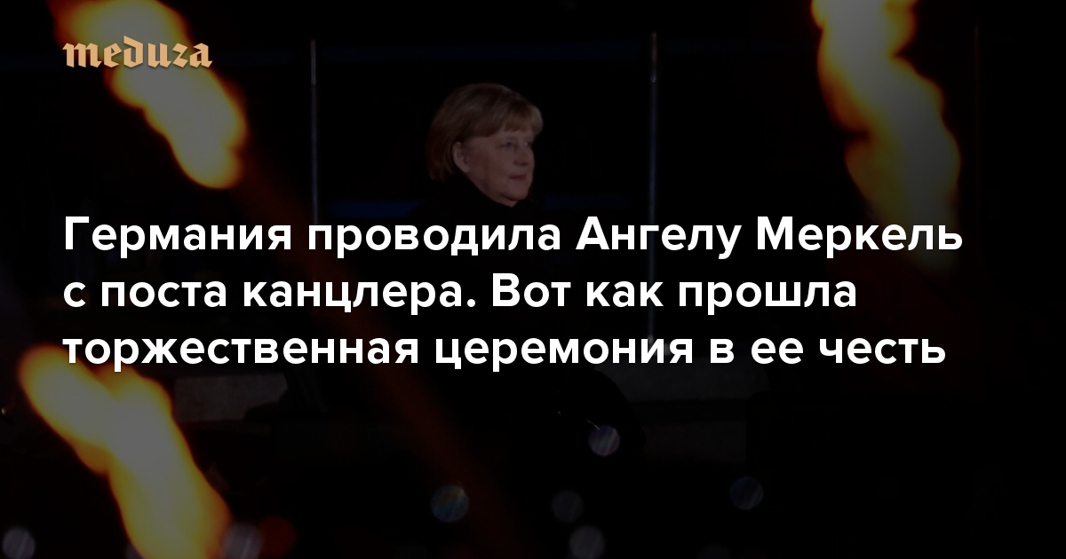 2 декабря в Берлине прошла торжественная церемония в честь Ангелы Меркель в связи с ее уходом с поста канцлера ФРГ. Церемонию под названием «Вечерняя заря» («Großer Zapfenstreich») организовал бундесвер, вооруженные силы Германии. Это мероприятие — ключевой момент перед уходом Меркель из правительства после 16 лет работы. Официально она покинет пост канцлера в начале следующей недели, до 8 декабря.