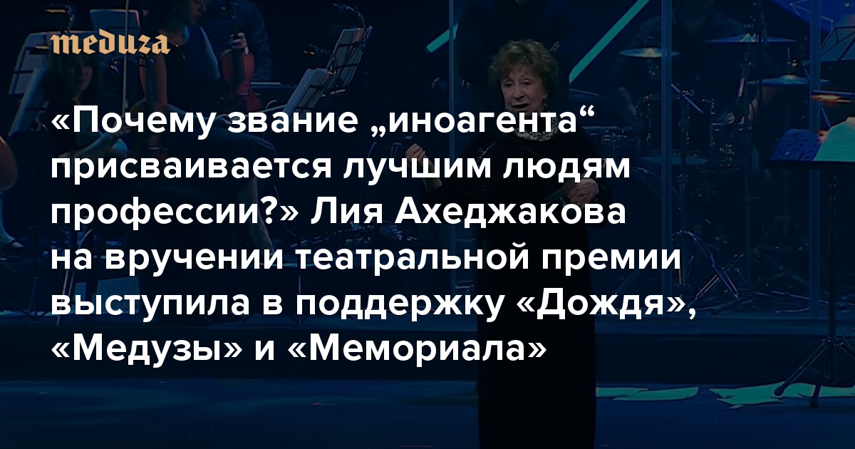 «Почему звание „иноагента“ присваивается лучшим людям профессии?» Лия Ахеджакова на вручении театральной премии выступила в поддержку «Дождя», «Медузы» и «Мемориала»