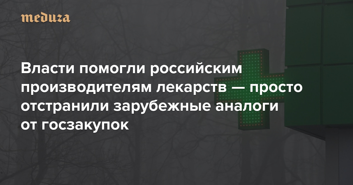 Власти помогли российским производителям лекарств — просто отстранили зарубежные аналоги от госзакупок Похожим образом в футболе когда-то очистили место для российских игроков. Это не заставило их играть лучше