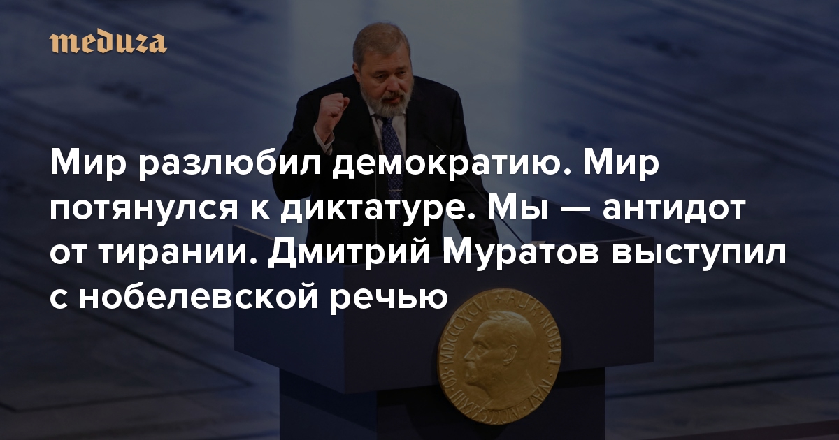 Мир разлюбил демократию. Мир потянулся к диктатуре. Мы — антидот от тирании Дмитрий Муратов выступил с нобелевской речью. И объявил минуту молчания в память о погибших журналистах