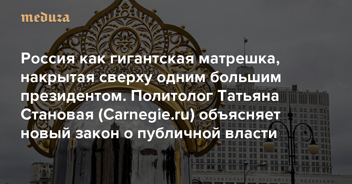 Россия как гигантская матрешка, накрытая сверху одним большим президентом Политолог Татьяна Становая (Carnegie.ru) объясняет новый закон о публичной власти