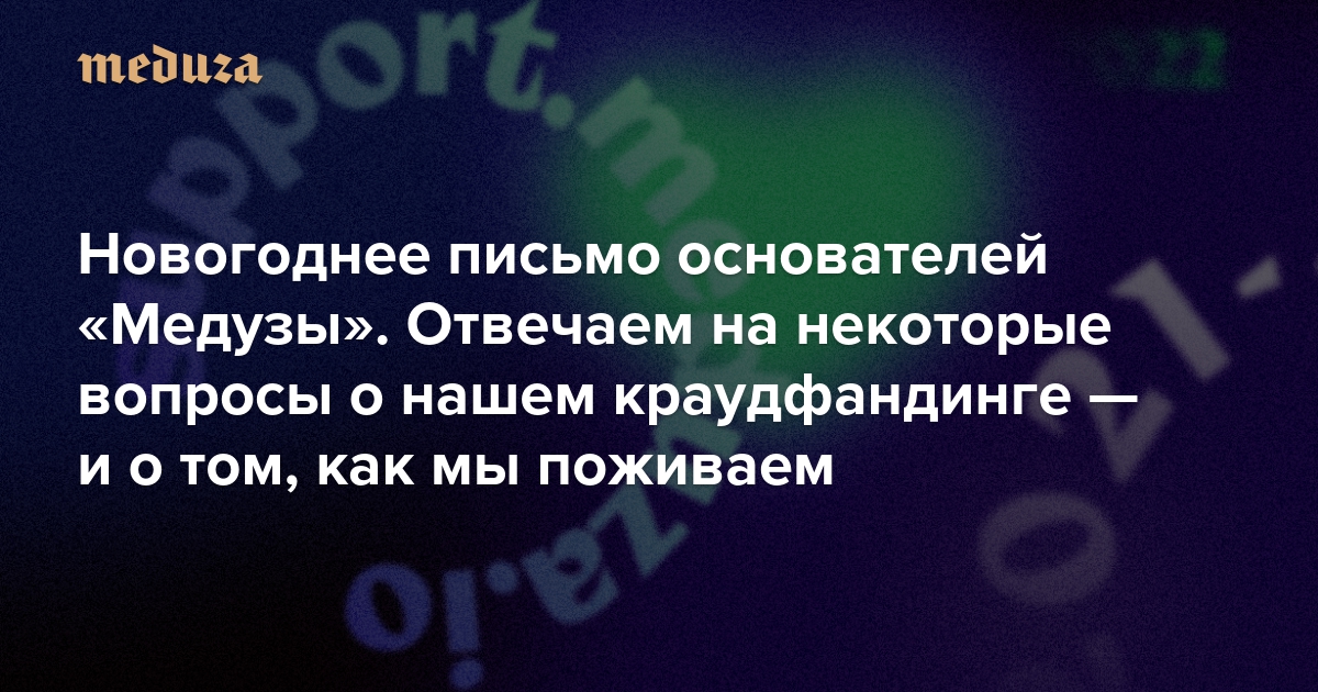 Новогоднее письмо основателей «Медузы» Провожаем 2021-й: отвечаем на некоторые вопросы о нашем краудфандинге — и о том, как мы поживаем