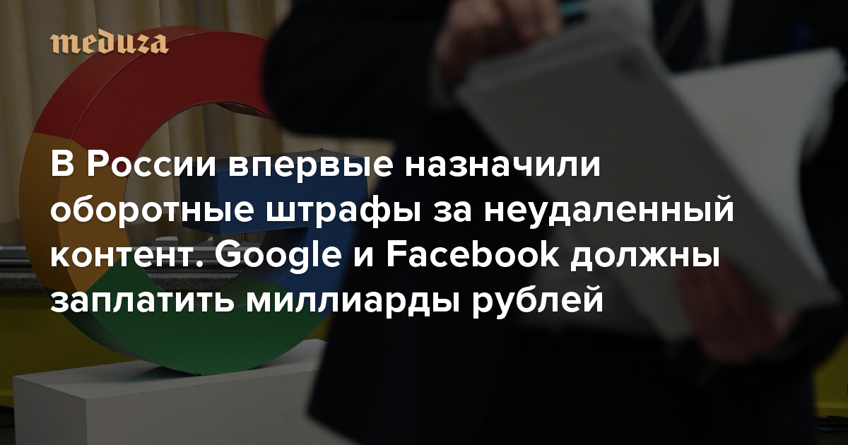 В России впервые назначили оборотные штрафы за неудаленный контент. Google и Facebook должны заплатить миллиарды рублей