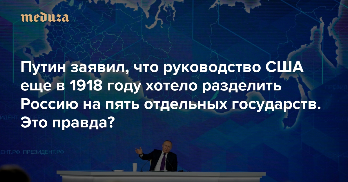 Путин заявил, что руководство США еще в 1918 году хотело разделить Россию на пять отдельных государств. Это правда? Разбираемся с историком Александром Эткиндом