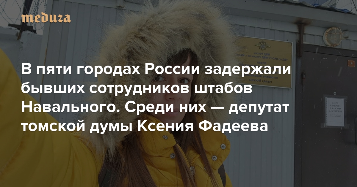 В пяти городах России задержали бывших сотрудников штабов Навального. Среди них — депутат томской думы Ксения Фадеева