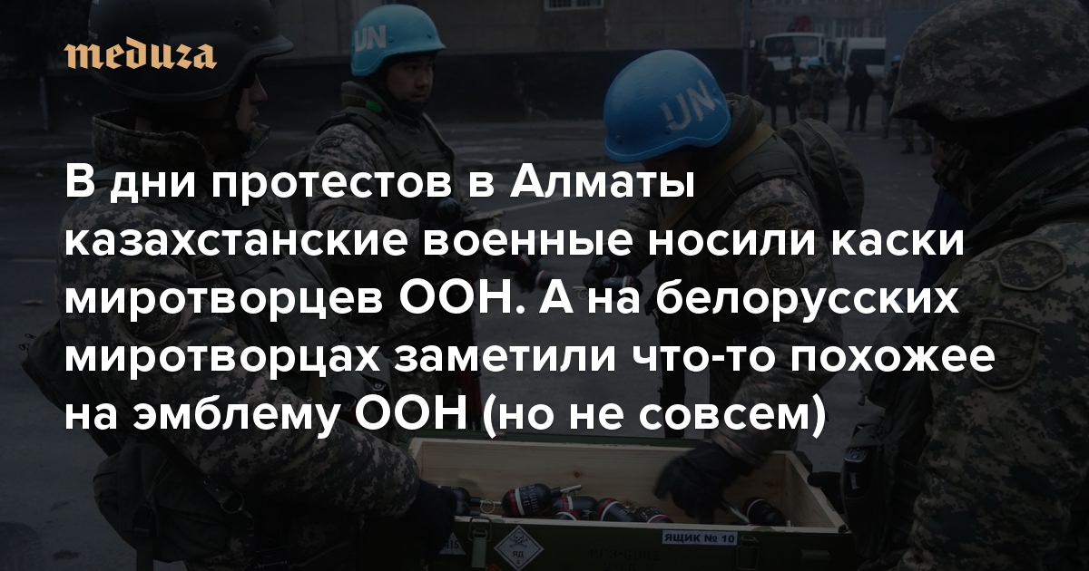 В дни протестов в Алматы казахстанские военные носили голубые каски миротворцев ООН А на белорусских миротворцах заметили что-то похожее на эмблему ООН (но не совсем)