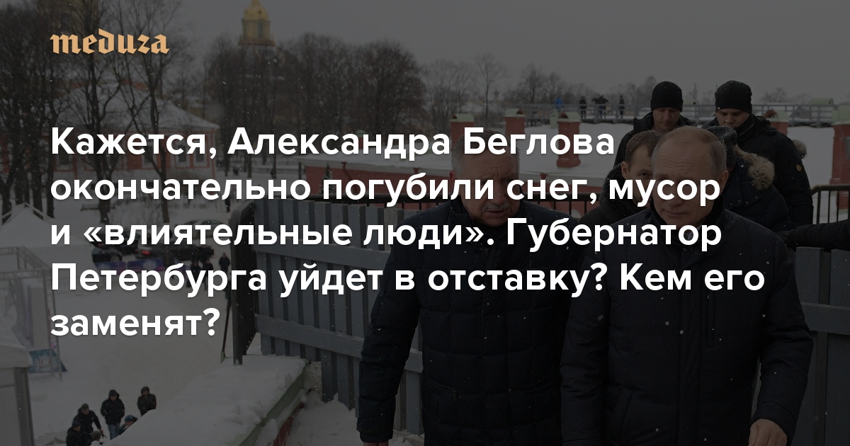 Для губернатора Петербурга Александра Беглова 2022 год начался не лучшим образом. Политик, которого и раньше постоянно критиковали, не смог организовать уборку снега и мусора с улиц. Более того, кажется, что теперь губернатором недовольны не только горожане, но и местные элиты. Спецкор «Медузы» Андрей Перцев рассказывает, означает ли это скорый уход Беглова с должности губернатора и готов ли у Кремля преемник на пост главы Петербурга.