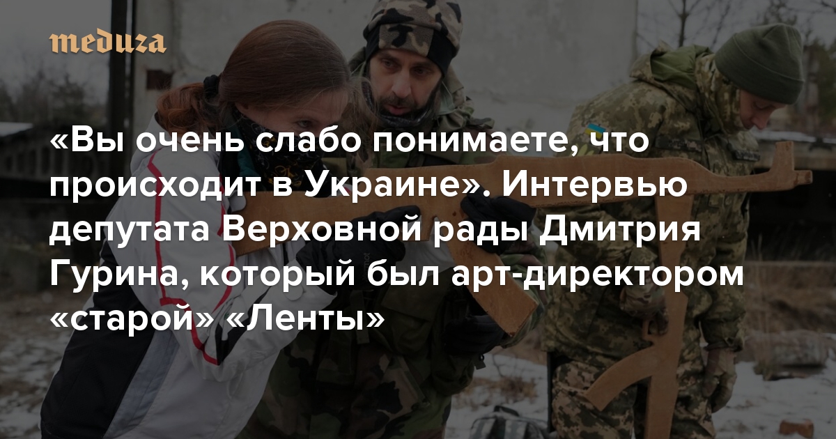 Дмитрий Гурин — депутат Верховной рады. Он родился в городе Хмельницкий на западе Украины, вырос в Мариуполе на востоке, а в 2002 году переехал в Москву, где работал в рекламе и медиа, в том числе арт-директором «старой» «Ленты.ру». В 2014-м, после «Евромайдана», Гурин вернулся в Украину и занялся общественной деятельностью и политикой. На выборах 2019 года он был избран депутатом Верховной рады от партии «Слуга народа» Владимира Зеленского. Недавно Гурин вошел в межфракционное объединение «Разумная политика» экс-спикера Рады Дмитрия Разумкова, который ушел в оппозицию Зеленскому. Журналист «Медузы» Дмитрий Карцев поговорил с Гуриным о том, что думают в украинском истеблишменте о возможной войне с Россией — и как на ситуацию влияют многочисленные внутриполитические конфликты в стране.
