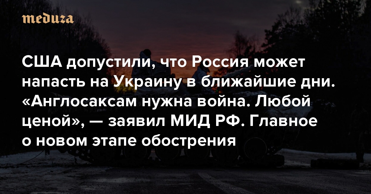 США допустили, что Россия может напасть на Украину в ближайшие дни. «Англосаксам нужна война. Любой ценой», — ответил МИД РФ Главное о новом этапе обострения