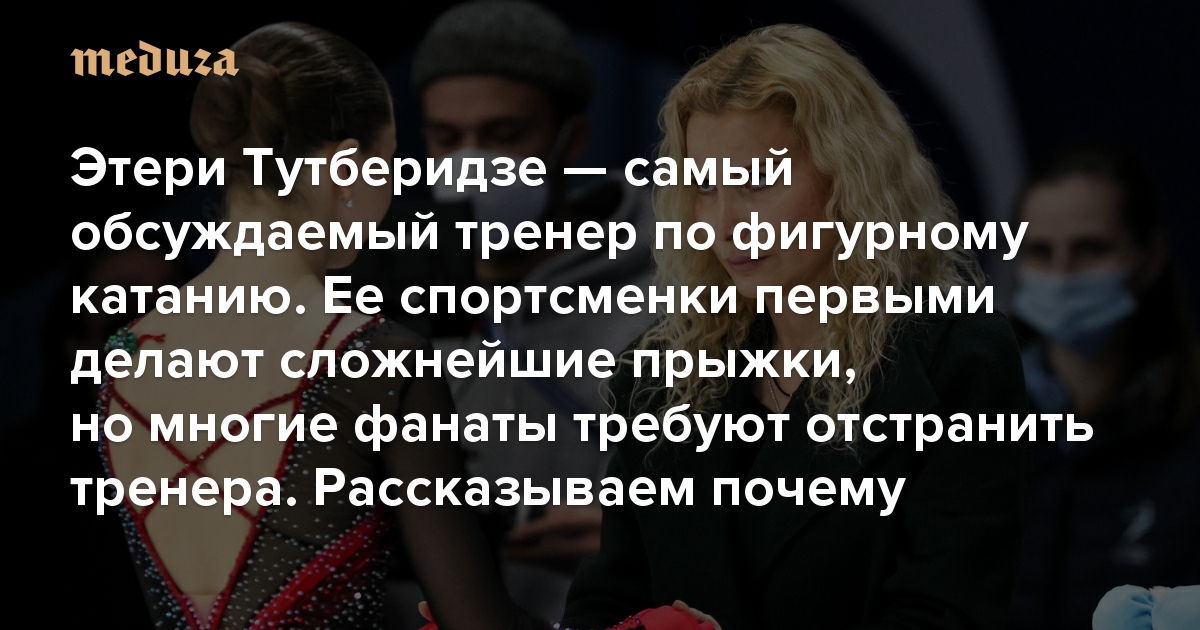 С 11 февраля хэштег #ПозорТутберидзе несколько дней возглавлял тренды российского твиттера. Заслуженного тренера России по фигурному катанию Этери Тутберидзе, которая воспитала уже трех олимпийских чемпионок и готовила к выступлению на Играх-2022 в Пекине Александру Трусову, Анну Щербакову и Камилу Валиеву, начали критиковать после новостей о результатах допинг-пробы 15-летней Валиевой, в которой обнаружили запрещенное вещество триметазидин. «Медуза» кратко рассказывает историю Этери Тутберидзе — тренера, разделившего болельщиков фигурного катания на два непримиримых лагеря.