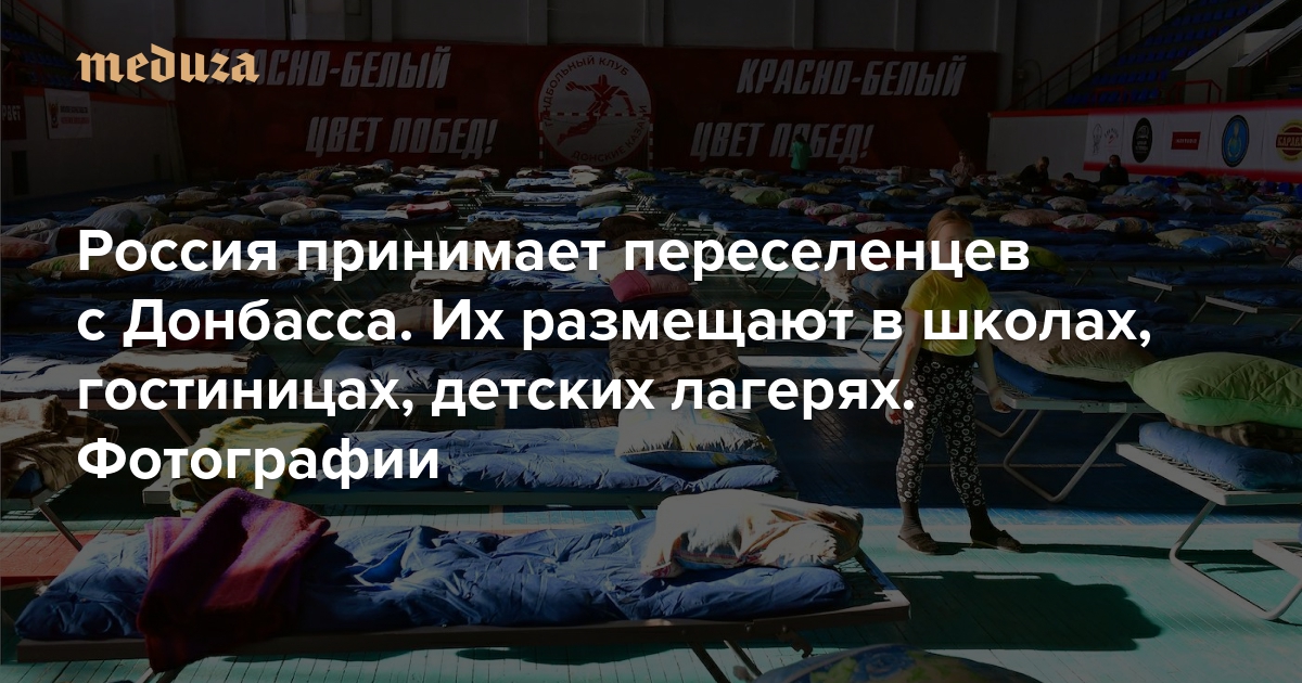 Россия принимает переселенцев с Донбасса. Их размещают в школах, гостиницах, детских лагерях. Фотографии