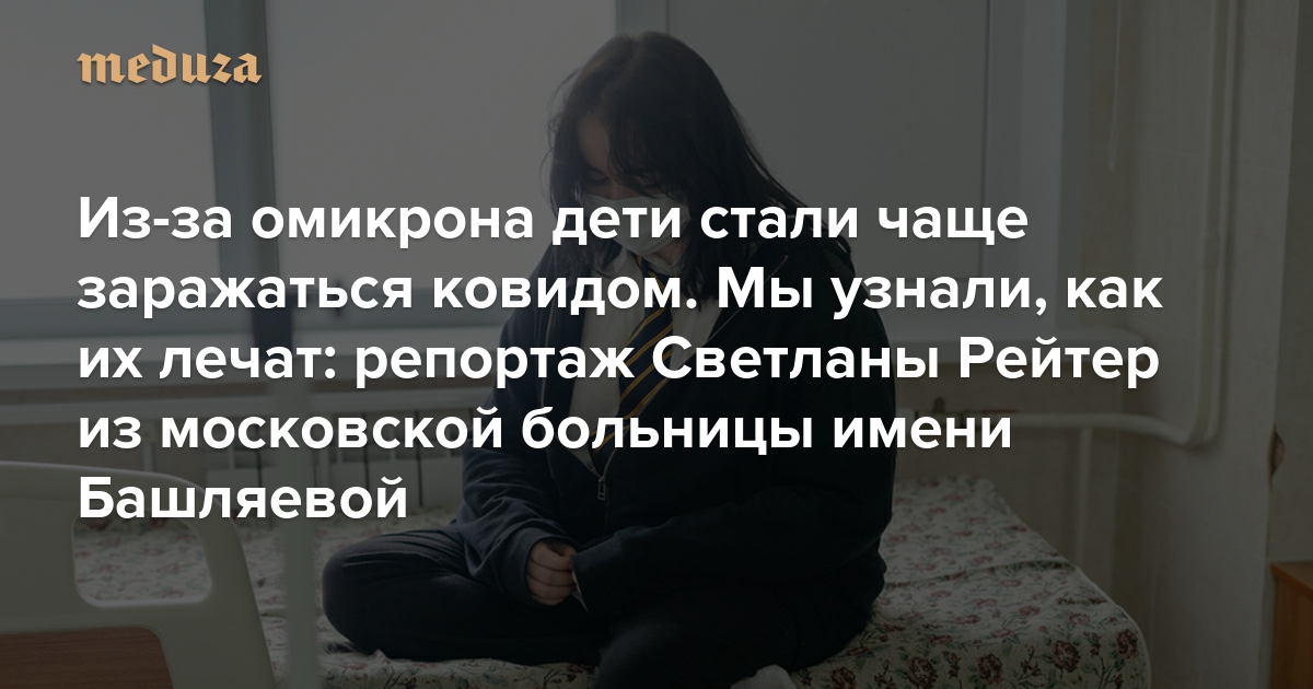 Одновременно с распространением штамма омикрон московские власти зарегистрировали всплеск заболеваемости ковидом среди несовершеннолетних. Всего за время пандемии переболели больше 300 тысяч детей, около 14 тысяч были госпитализированы — некоторые из них тяжело перенесли болезнь, хотя обычно дети болеют коронавирусом легче, чем взрослые. 17 февраля спецкор «Медузы» Светлана Рейтер отправилась в московскую больницу имени Башляевой, чтобы своими глазами увидеть, как сейчас лечат детей, госпитализированных с ковидом.